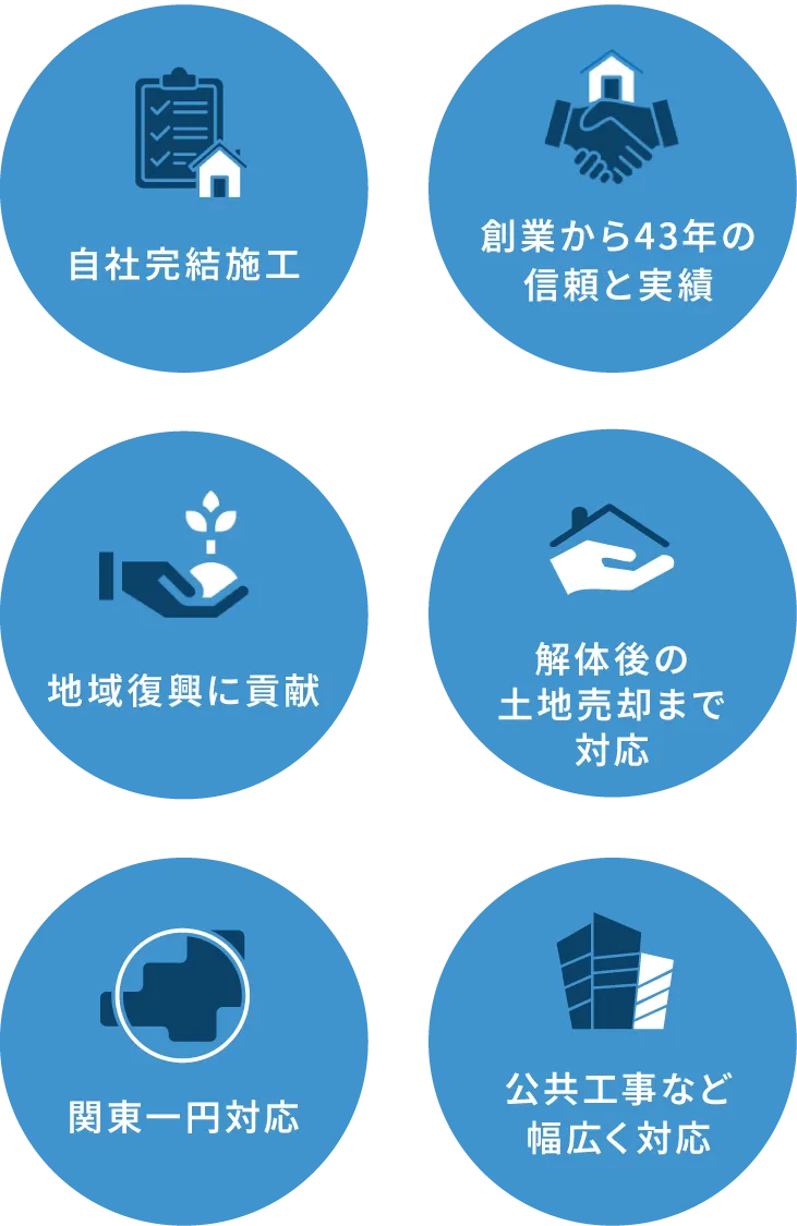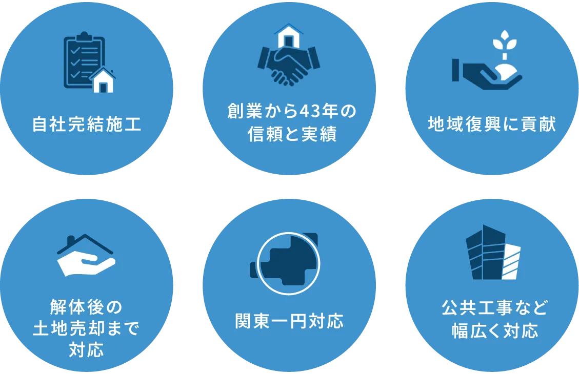 家屋の撤去から下水工事まで、幅広いご依頼に対応できるのが強みです。